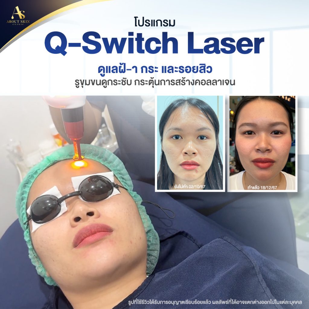 โปรแกรม Q-Switch Laser เป็นเทคโนโลยีเลเซอร์ที่ใช้พลังงานสูงในการกระตุ้นการสร้างคอลลาเจนในชั้นผิวอย่างมีประสิทธิภาพ ซึ่งช่วยให้หลุมสิวดูตื้นขึ้นและผิวหน้ากระชับขึ้นค่ะ การรักษาด้วยโปรแกรม Q-Switch จะไม่ทำให้ผิวเกิดความระคายเคืองหรือบวมมาก และสามารถเห็นผลในช่วงเวลาที่ค่อนข้างเร็ว นอกจากนี้เลเซอร์ Q-Switch ยังสามารถช่วยลดรอยแผลเป็นจากสิวได้ด้วยค่ะ